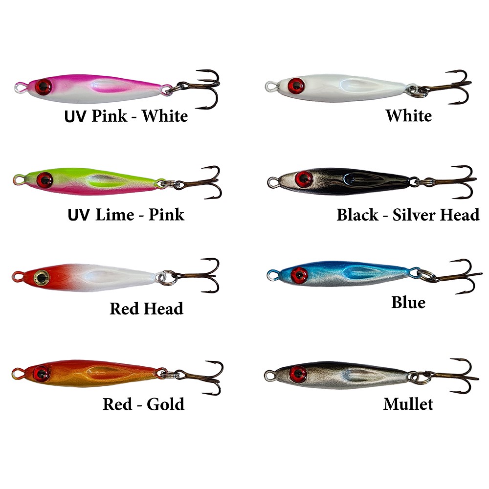 Black – Silver Head ,Blue ,Mullet ,Red / Gold ,Red Head ,UV Lime – Pink ,UV Pink – White ,White |