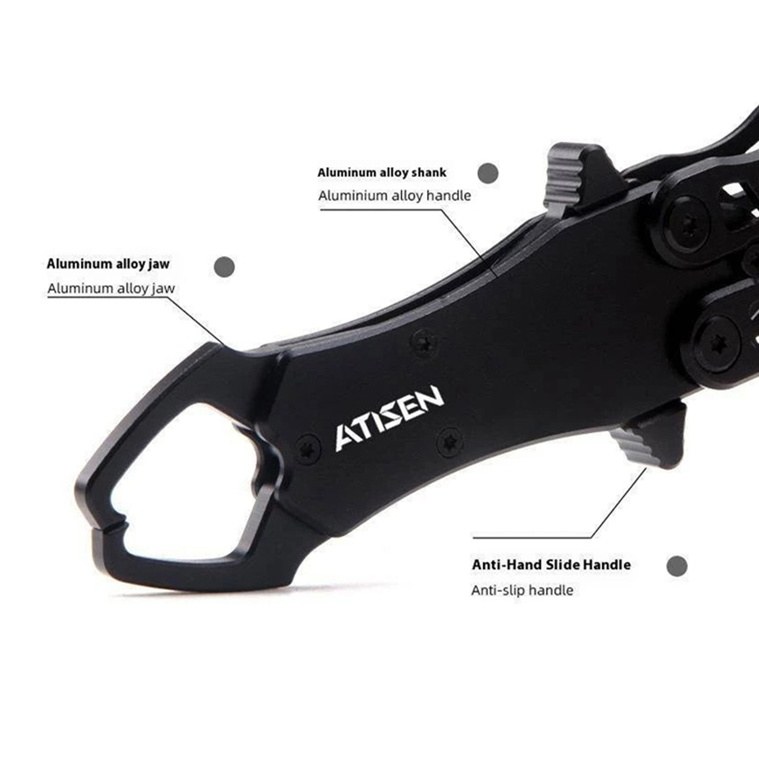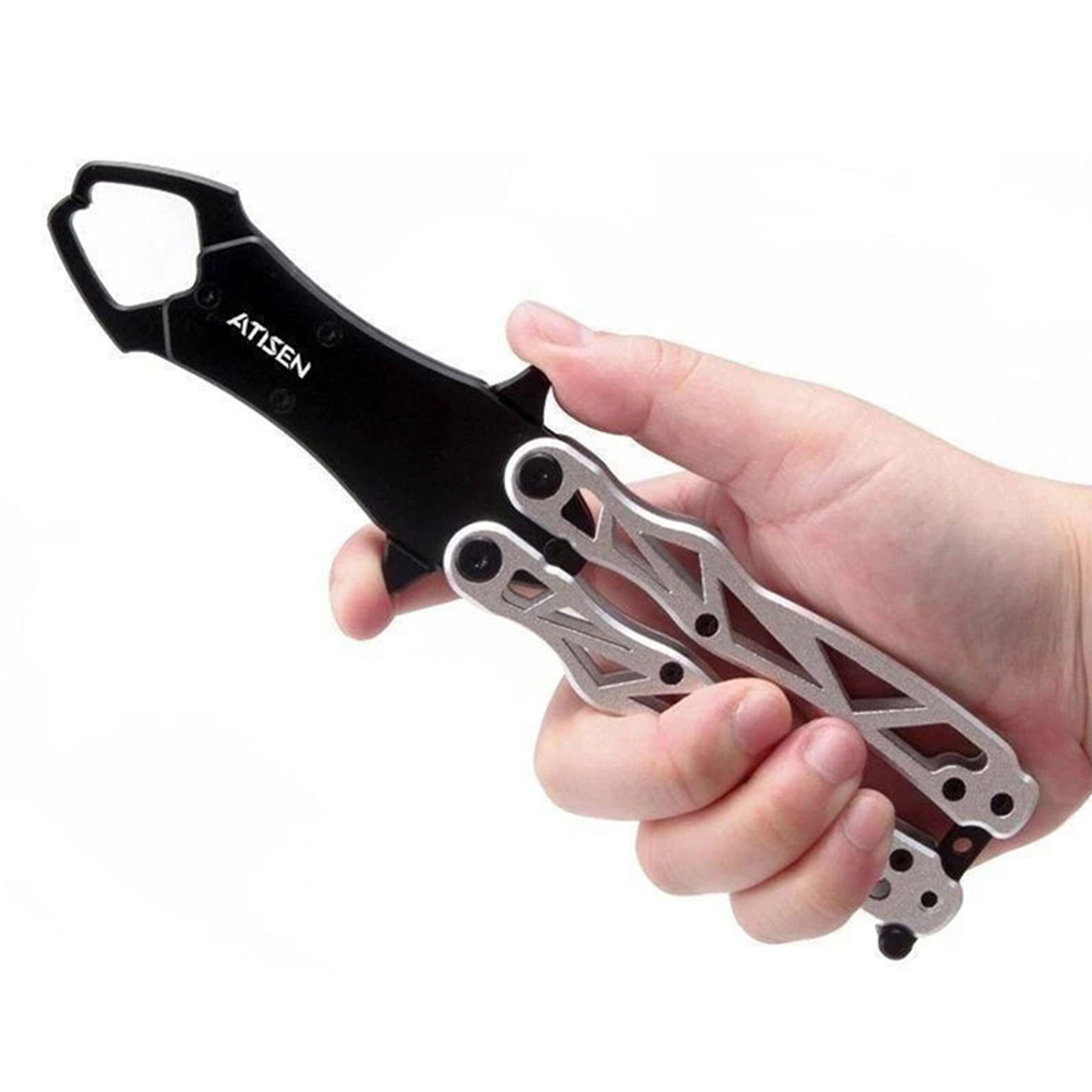 Αναδιπλούμενο lip grip τύπου “πεταλούδα” από την Atisen, με κομψό σχεδιασμό αλουμινίου και μηχανισμό που προσφέρει σταθερότητα και αντοχή. Με καινοτόμο αναδιπλούμενο σχεδιασμό, προσφέρει εύκολη μεταφορά και αποθήκευση, ενώ το ελαφρύ αλλά ανθεκτικό σώμα από αλουμίνιο εξασφαλίζει μακροχρόνια χρήση χωρίς φθορά. Η εργονομική του κατασκευή επιτρέπει ασφαλές και σταθερό κράτημα των ψαριών από το στόμα, μειώνοντας τον κίνδυνο τραυματισμού τόσο για τον ψαρά όσο και για το ψάρι. Ιδανικό για χρήση σε γλυκό και αλμυρό νερό.