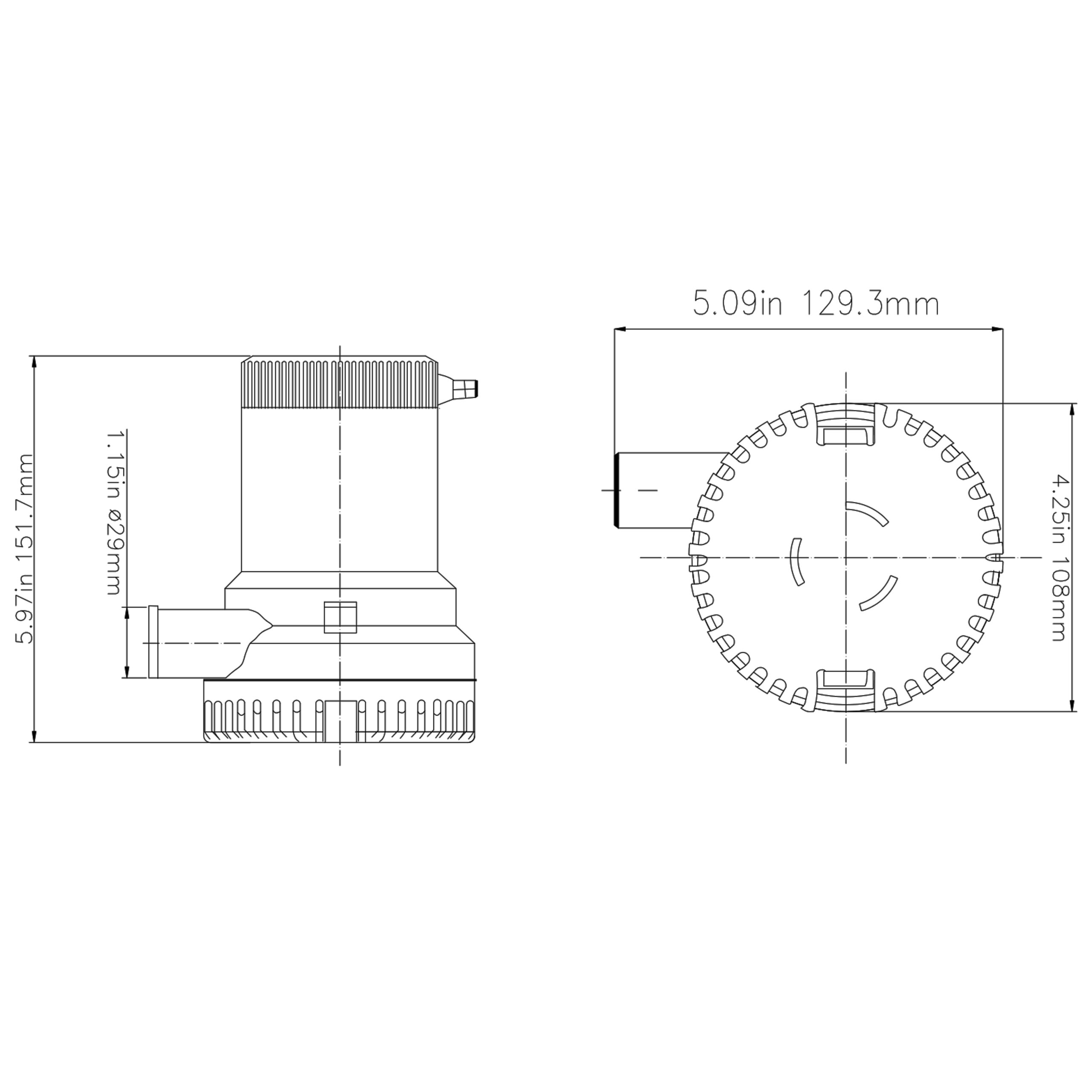 | 01817-200024 | 29mm | 6 μ. | H151,7 x W129,3 mm | 2000 GPH / 126 LPM | 5A | 24V |
